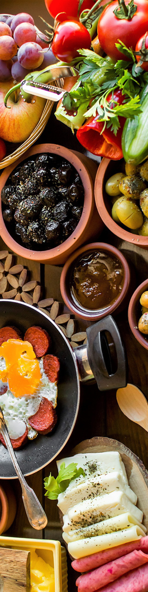 Yeşillik Tabağı, Siyah Zeytin, Yeşil Zeytin, Acuka, Böğürtlen Reçeli, Portakal Reçeli, Bal, Tereyağ, Sahanda Sucuk, Sahanda Yumurta, Menemen, Patates Tabağı, Sosis, Sigara Böreği, Soğan Halkası, Salatalık, Domates, Sınırsız Çay