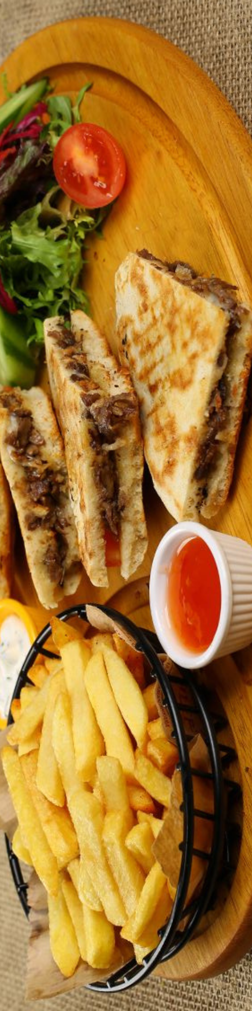 Tortilla Lavaşı Arasında 120 gr. Köfte, Renkli Biber, Mantar, Peynir, Patates Cips