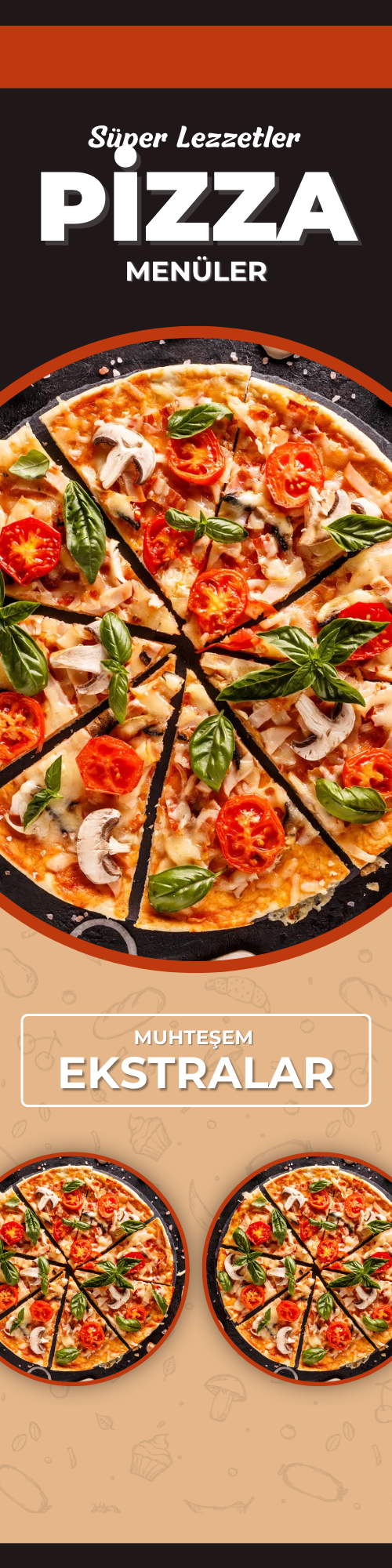 Domates Sosu, Mozarella Peyniri, Pastırma, Sucuk, Biber