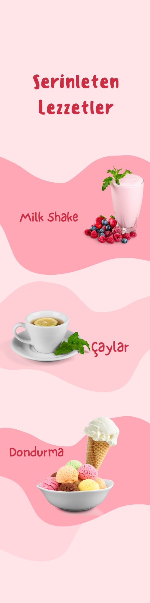 Çilek, Karpuz, Yeşil Elma, Mango ve Ejder, Hibiskus ve Orman Meyveli, Çarkı Felek ve Guava, Klasik Mojito